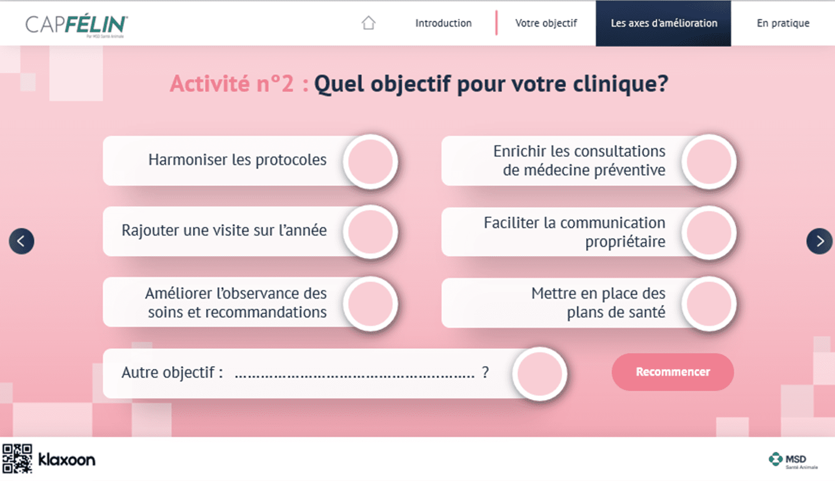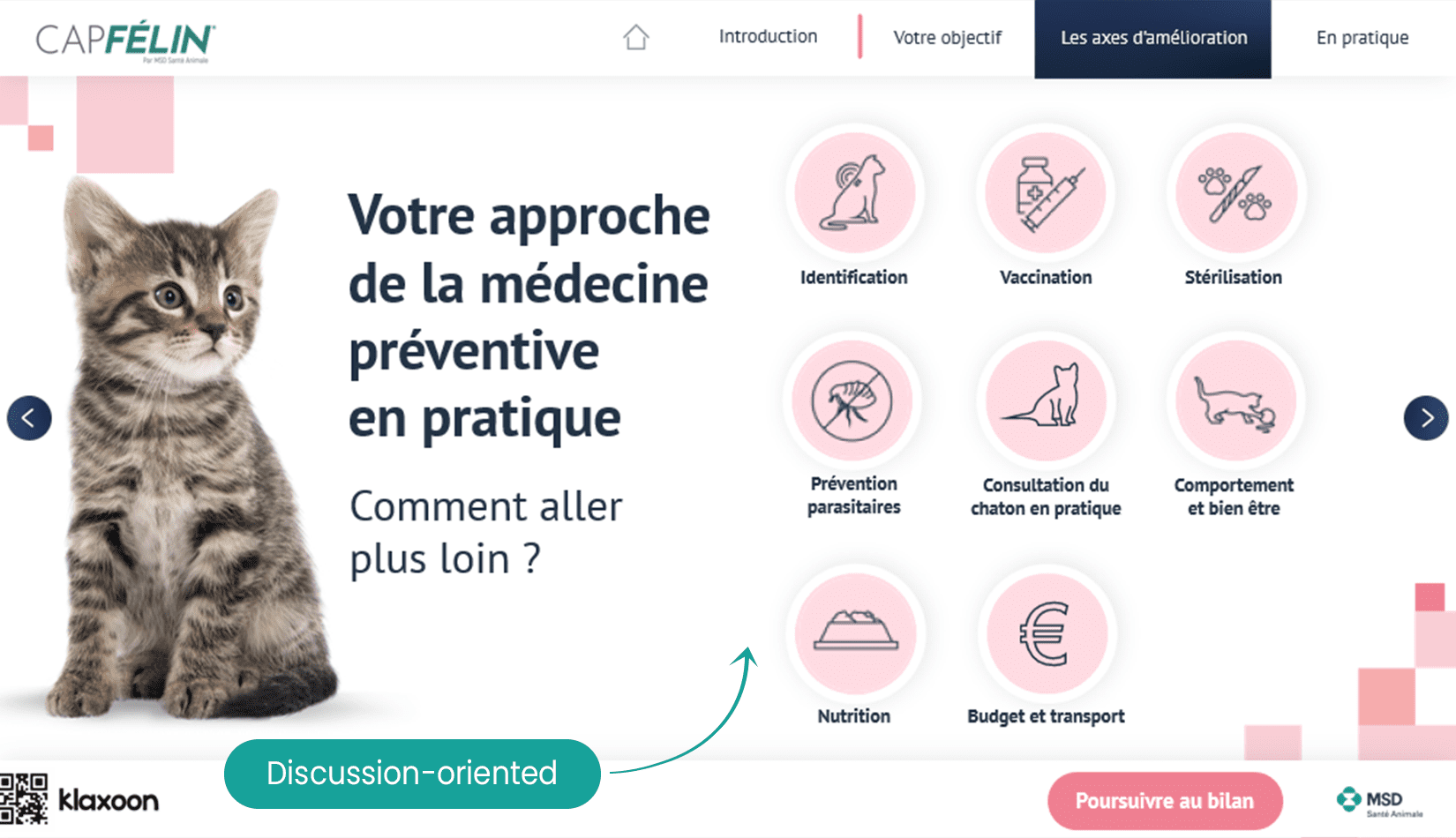 Creation of a Lunch&Learn to be given in clinics to raise awareness of the benefits of preventive healthcare for kittens (<1 year-old) and to guide veterinary teams in building a personalized care plan. An interactive PPT was built which served as a starting point to co-construct with vets and nurses a preventive health care plan for kittens that is tailored to the clinic.